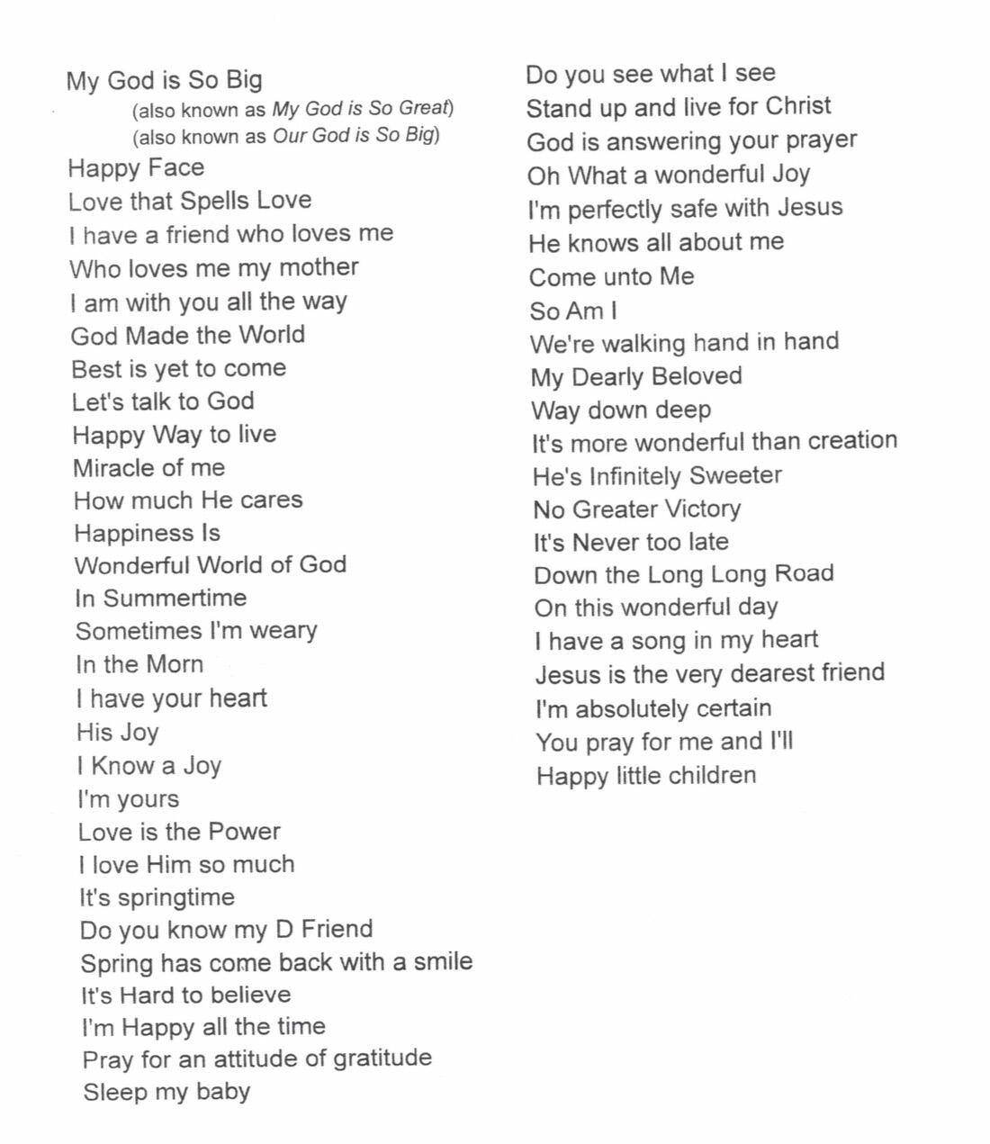 Here Ruth sings her joyful song My God Is So Big, accompanied on piano by her best friend Happi Moore. (God-daughter Bonnie Knopf behind the camera and also singing along)